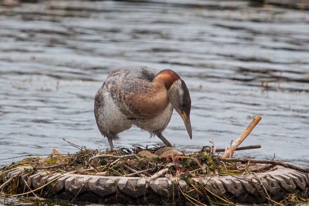 When I showed up to the site for the gulls and the crows I was lucky enough to get to hear the Fish Crows unusual sounding call, I wasn’t lucky enough to lay eyes on neither the crows or the Little Gulls. Since I was in the area I decided to head to the marina to see what I could see, and I was treated with a wonderfully close encounter with a male Red-necked Grebe as he preened himself in the water. His partner was not far off, sitting on their nest incubating their eggs.